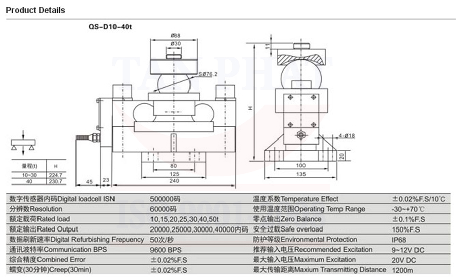 Cảm biến tải (Loadcell) QSD 30 tấn, 40 tấn